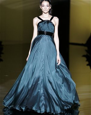 晚礼服的天才设计师Eile Saab推出“夜之女王”晚礼服。此款露肩翠色礼服采用了多层薄纱,配以黑珍珠镶嵌的宽腰带,贵气十足,让全世界的名女人都为之兴奋。