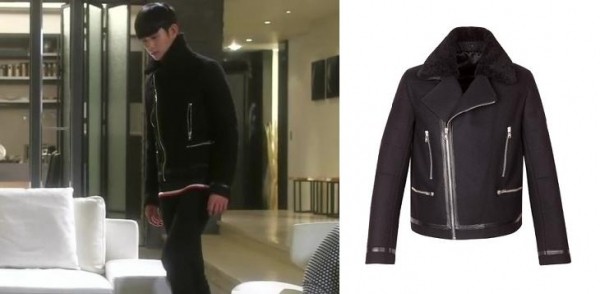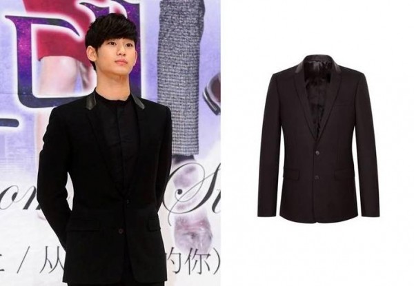 金秀贤身着Sandro黑色皮领西装上衣NOWAVE出席《来自星星的你》新闻发布会。