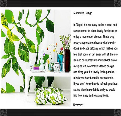 我相信,Marimekko五彩斑斓、欢快烂漫的花布一定给芬兰人的生活带来不少积极向上的能量。