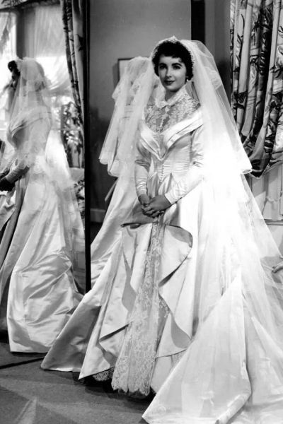 这部经典电影中的婚礼是好莱坞荧屏上最著名的婚礼之一,Elizabeth Taylor穿着的华丽礼服,特别是蕾丝花边领与荷叶边的结合,至今为止还是很难逾越的完美婚纱。