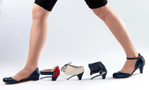 高跟鞋的意大利文是Stiletto,即一种刀刃很窄细的匕首。对女人来说,高跟鞋就像是一把尖锐、性感、致命的匕首,让女人征服男人。紧追时尚的MM哪个鞋柜里不是成百上千的高跟鞋(当然,这绝对是名媛小姐们的鞋柜),但即便这样,你总会在某些时间某些场合觉得缺少一双配对的高跟鞋。加上时尚潮流的更新速度,高跟鞋俨然也造成了不小的浪费。设计师Daniela Bekerman带来这款名为“ze o ze”的设计。Ze o ze 希伯来文,意思是“这个,还是这个?”这相当符合你每次搭配衣服挑选鞋子的场景。这款高跟鞋可随你任意搭配后跟的不同高度,颜色,款式,只需将满意的后跟样式插入鞋底部的轨道中即可。只可惜,前面的样式无法改变。