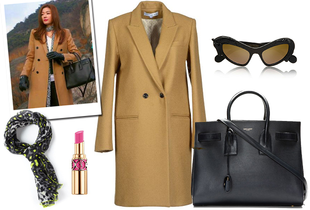 服装造型提供:Paul & Joe驼色大衣($196)Saint Laurent Paris Sac de Jour黑色手袋($2550)