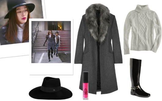 服装造型提供:Capitol Couture by Trish Summerville羊毛外套($695) J Crew 灰色高领毛衣($98)