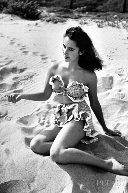 伊丽莎白·泰勒,木耳花边加上格子图案,清纯少女的款式。
