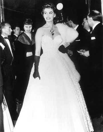意大利女演员索菲亚·罗兰(Sophia Loren)在1955年戛纳电影节上选择了一件桃心领口的白色长裙,震惊了所有在场的嘉宾.