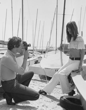 塞尔日·甘斯布(Serge Gainsbourg)在1969年的海滩边为简-柏金(Jane Birkin)拍照。
