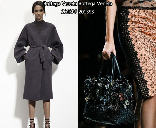 郭碧婷则是全身Bottega Veneta,2013春夏款立体蝴蝶装饰Tote手袋甜美可爱,大衣疑似出自2013早秋系列。
