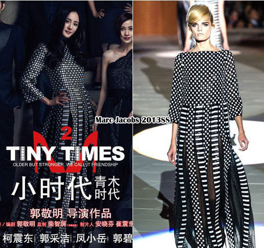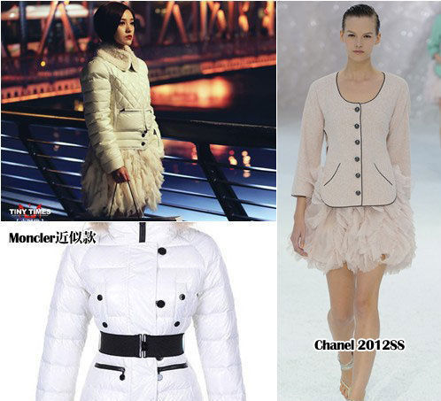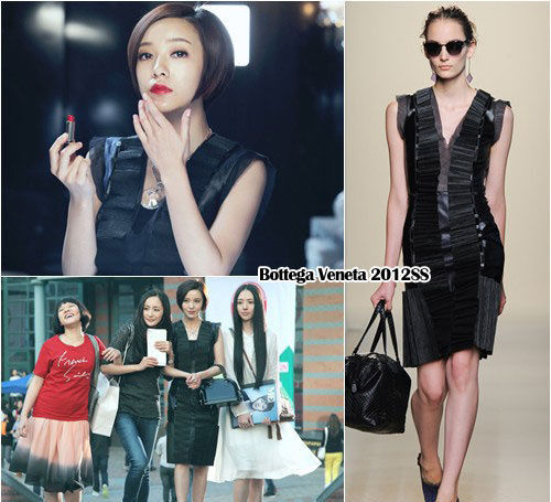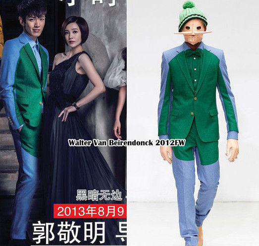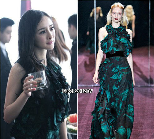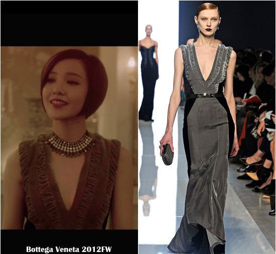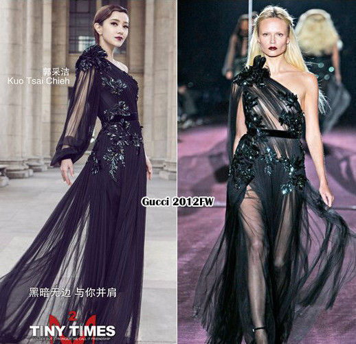 在这一组曝光的场景中,郭采洁穿的Lanvin 2013秋冬系列抹胸褶花小黑裙,这件礼服在今年人气颇高,张雨绮、王珞丹、郭碧婷等众多女星都曾演绎过,是撞衫的热门款。在画面最角落处不太显眼的郭碧婷穿的则是Fendi 2012早秋系列泼墨风双色长裙。