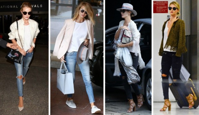 时尚巨人国代表:超模Rosie用一件白Tee凹出四套造型,外套分别穿了缎面软夹克、Stella McCartney粉西装外套、Talitha Ghara流苏披肩夹克和Saint Laurent豹纹流苏夹克