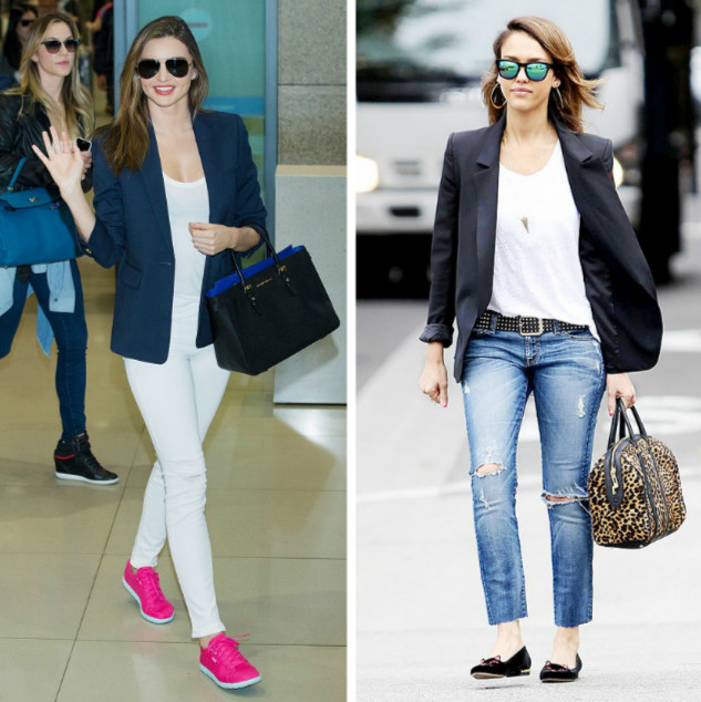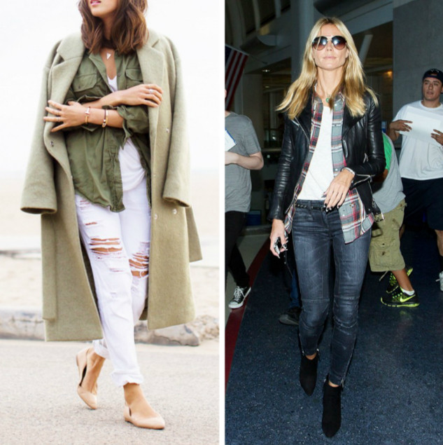 时尚博主AimeeSong和德国超模Heidi Klum都选择了在白Tee和外套之间再加一件衬衫,层叠搭配的好处是某些衣橱主食你可以反复利用,变幻出不同造型,又让人很难想起你曾经穿过同样的衣服,而且随着天气越来越冷,添件衬衫温暖又时髦,何乐而不为