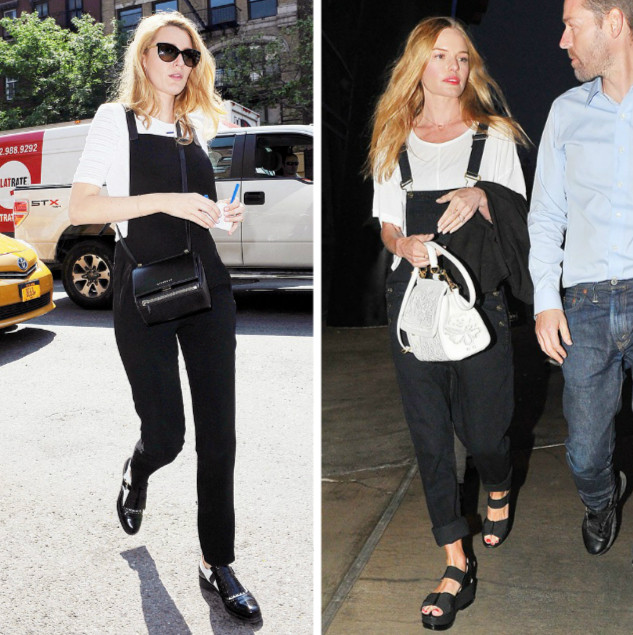 随意一点的穿法就参照Blake Lively和Kate Bosworth的,Blake穿的是595美金的Rag & Bone背带裤,包包是1690美金的Givenchy Pandora Mini Box Bag
