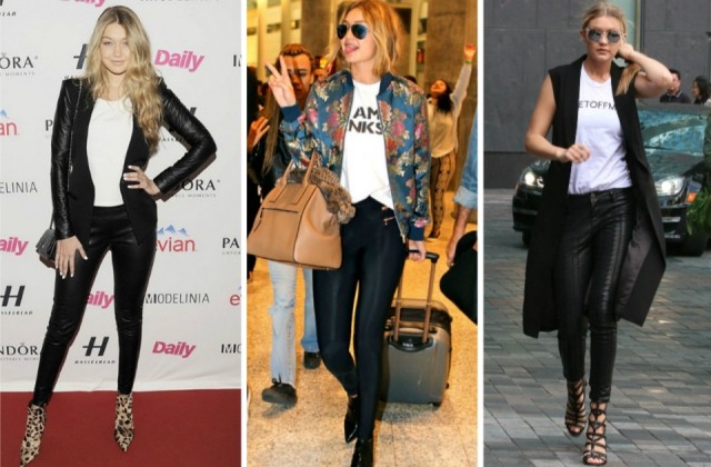 Gigi非常喜欢穿黑色的紧身legging,年轻漂亮身材好就这么任性,不过白Tee 黑色紧身legging的穿法真的气场强大,如果你也有又美又直的大长腿一定要试试这么穿