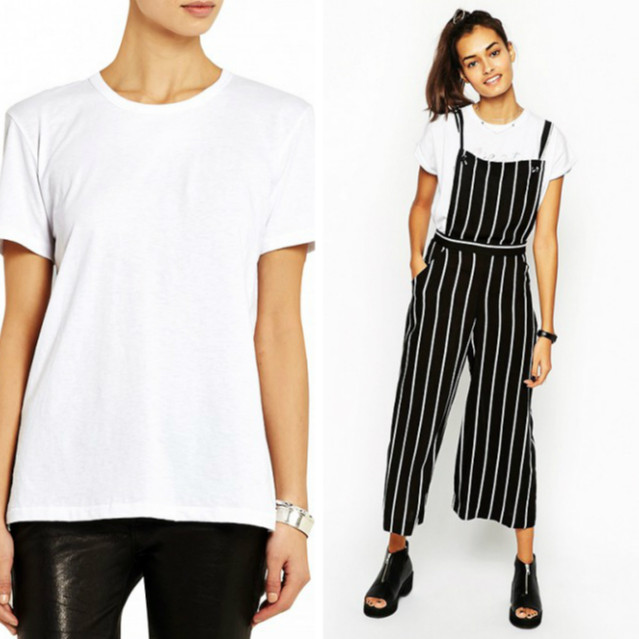 Rag & Bone棉白Tee 85美金,ASOS的条纹背带裤81美金,高性价比组合