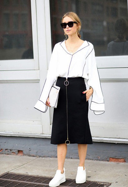 女人味儿连衣裙搭配帆布鞋凸显轻松氛围,连时尚达人Veronika Heilbrunner都无法抵挡帆布鞋的诱惑,你又有什么理由拒绝。