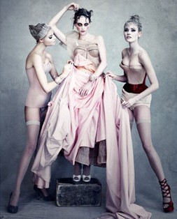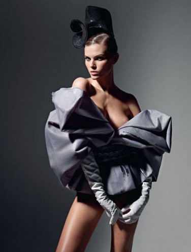 在Patrick Demarchelier的镜头下,黑白碰撞擦出了新的视觉火花,而模特儿们夸张的妆容与配饰相得益彰,为本来就已美的令人窒息的高定增添了更多的亮点。