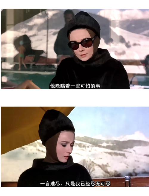 实际上是AUDREY用这套黑色当丧服,并且也没有站起来,看不清衣服到底是什么样式,只知道下面是及膝裙子,照样是平底鞋。