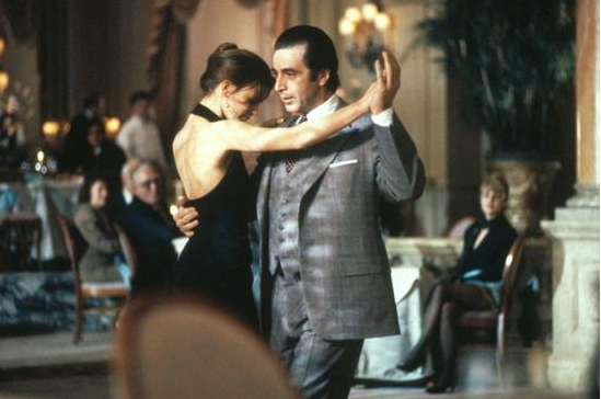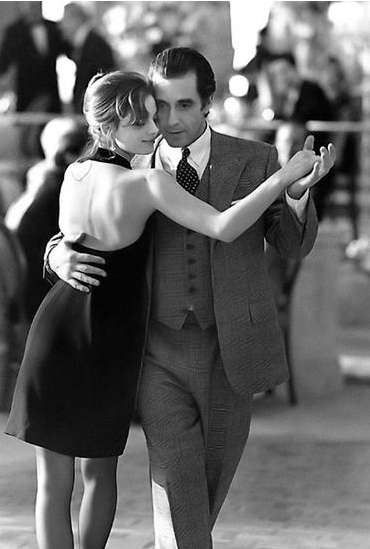 与史密斯夫妇的性感火辣不同,这个改编自意大利74年作品的电影,更多的是温柔与古典美丽的气质体现。年轻的Gabrielle Anwar穿着吊带黑色短裙,加上一双黑色丝袜,与西装革履的Al Pacino偏偏起舞,将探戈这种男女之间最高的智慧斗争演绎出了90年代末的味道。