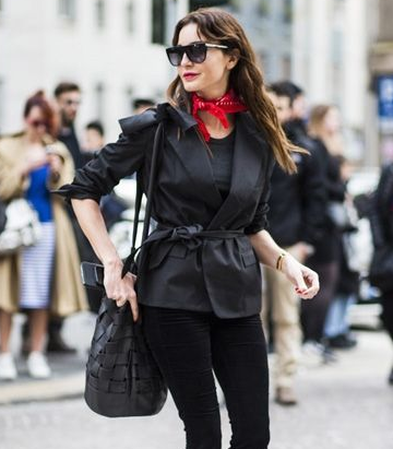 系上一条亮色印花丝巾便可令你看起来神采奕奕,细节处的色彩运用,是提升整体穿搭功力的秘诀。