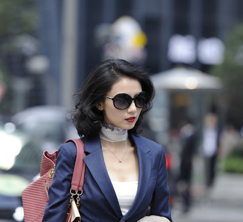 丝巾一抹亮色在颈项间,流露出一丝古典的韵味。