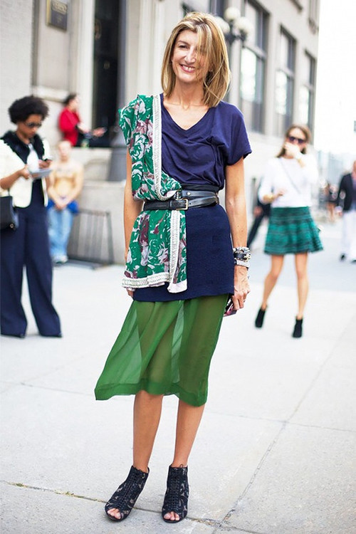 衬托上衣:这可能需要很大一条丝巾,整个变成一件上衣,或者搭配衣服,洒脱随性。