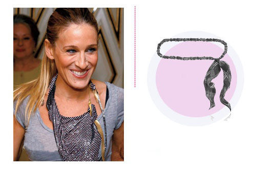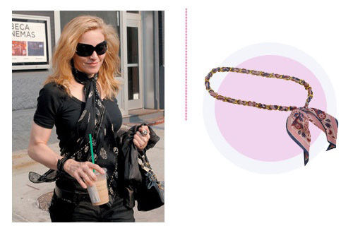 很酷的麦姐选择印有骷髅图案的黑色丝巾,简单地打结,配以黑色装束。加入民族图案的设计让你在这个春季定能脱颖而出。