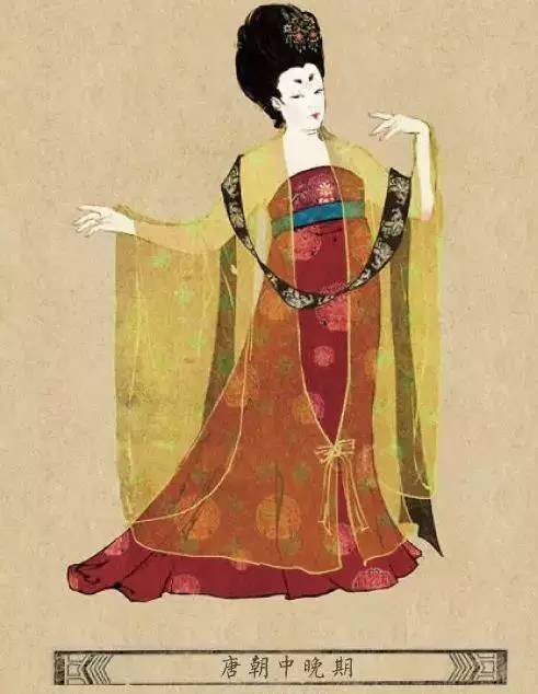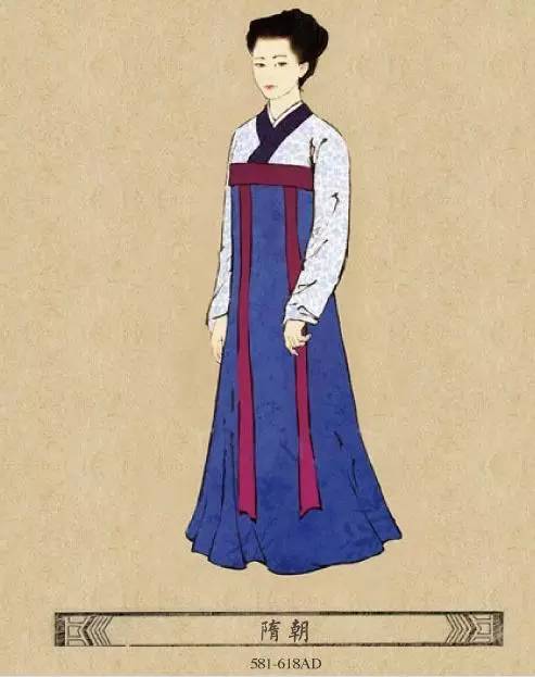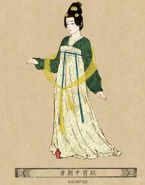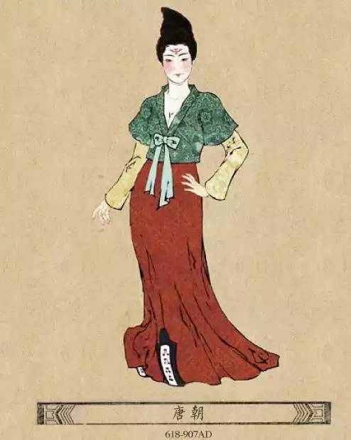 到了隋唐时期的服装,形成了着圆领袍、裹幞头、穿长靿靴的一般形式。腰带的形式,也由带钩改为带扣;女服的基本构成是上衫下裙,女饰则可用浓妆艳抹概之,反映了多姿丰腴的审美观。