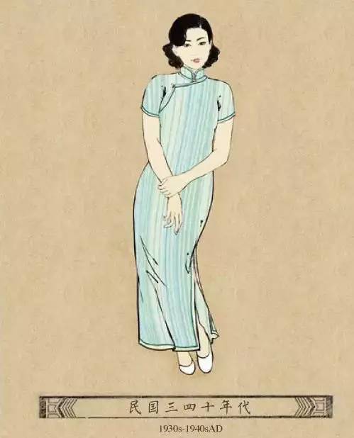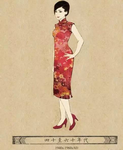 40年代是旗袍黄金时代在时间上的延续,旗袍式样更趋向于缩短衣长,减低领高,袖长短至肩下2-3寸,甚至没有袖子,外形如流线型。中国的旗袍越发好看和具有魅力了。江南女子的雅致,大都会小姐的精巧,繁华下的世故聪慧,女人的丽质和旗袍的剔透完全融于一体。