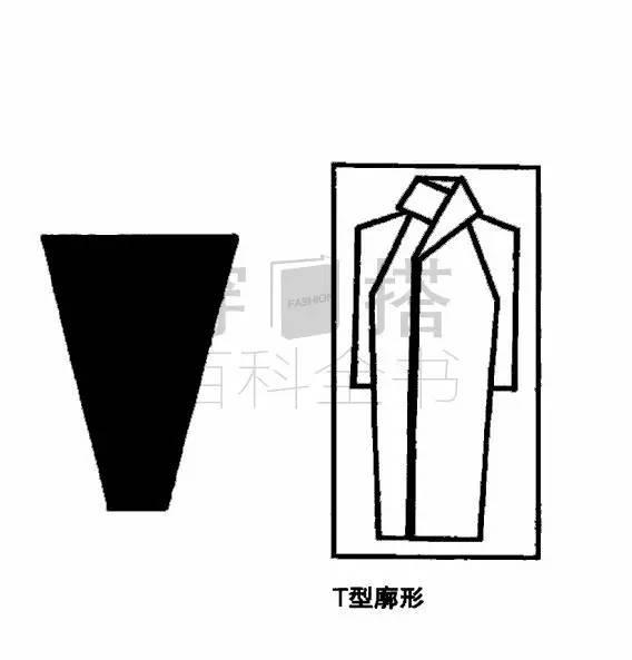型特点是肩部夸张、下摆内收形成上宽下窄的造型效果。T型服装具有大方、男性阳刚气、有力度。