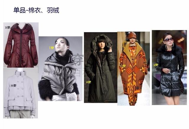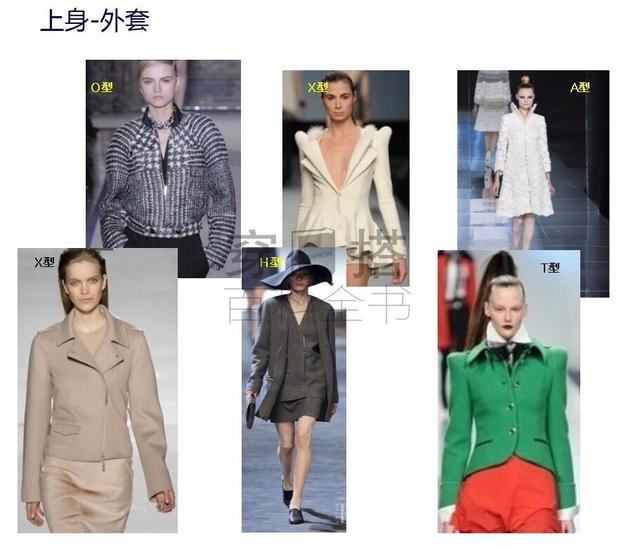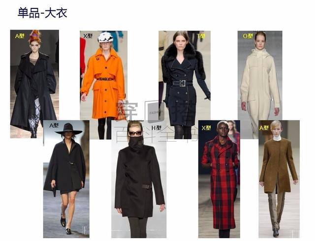 接下来看看不同单品的服装廓形的A、O、X、T、H