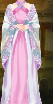 粉缎薄纱大袖宽领裙