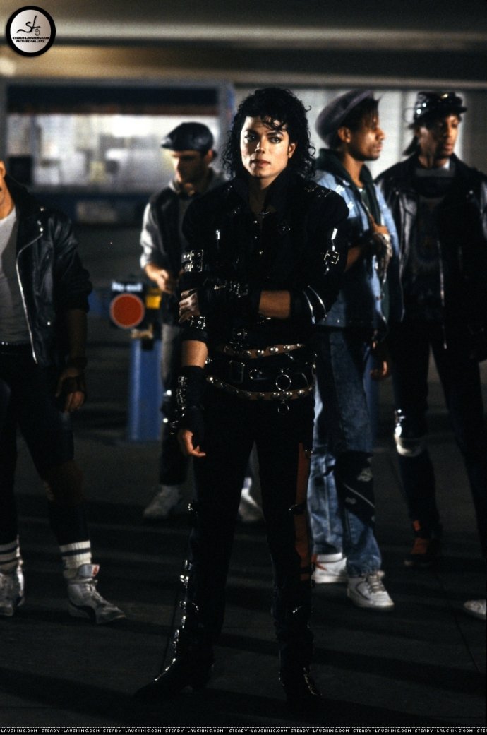 1987年,Michael Jackson在《Bad》MV中的黑色皮衣皮裤以及金属链条的造型,靴子和裤子上都有很多摇滚风格明显的搭扣。MJ最喜欢的配饰手套更是其中之一。