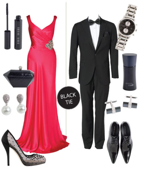 Black Tie 是比较正式的着装要求——对男士们来说仅是替换了 White Tie 的燕尾服,而对女士裙装上的定义几乎一样,并且长度没有特别要求。