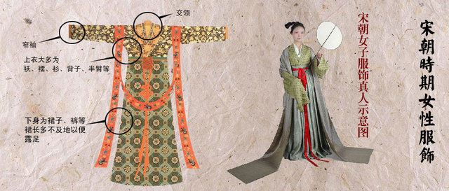 宋代妇女服饰比较复杂。宋末又流行窄袖裹贴住身体,前后两侧缝的地方开衩,衣衩处有许多衣扣作为装饰,叫做“密四门”,人称妖服,是古代的奇装异服之一。