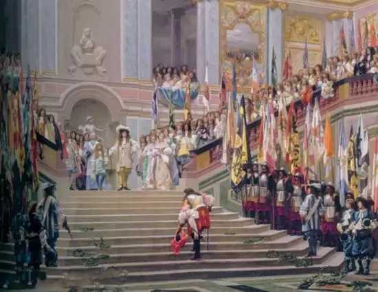 在莱昂·杰罗姆的《在凡尔赛宫为孔德亲王行接见礼》中