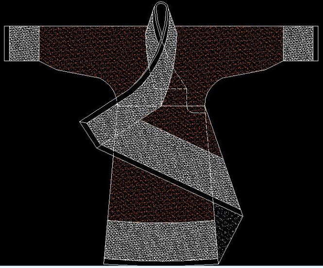 补充一下可以颠倒用幅(幅宽作为衣物长度而不是宽度)的地方:男子短裙(裙长60厘米以下)、抹胸、肚兜、兜裆等小件内衣以及各处缘边、系带等。