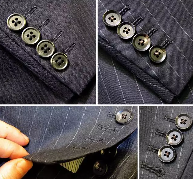 后来,一个军官从这件事受到启发,认为把纽扣钉到袖口向下的一面,可以减轻桌面袖子的磨损。于是,他向拿破仑建议,将衣袖上的三颗纽扣从衣袖的上侧移至下侧。此后的法国服装设计师们又将这三颗纽扣移至西服的袖口上,这样还可以增加西服的美感。此后相沿成习,流传至今。