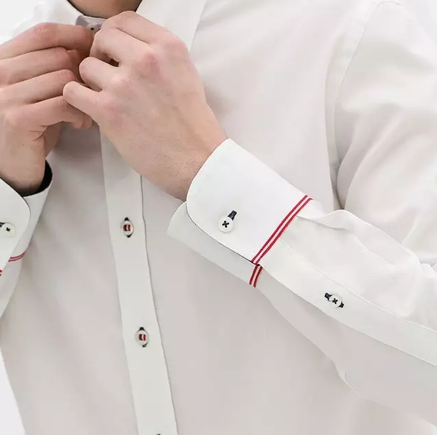 这种袖口特殊设计的衬衫一般多在正式场合穿着,而注重修身剪裁的英式高级行政人士也会把这种带袖扣的衬衣穿去办公室。