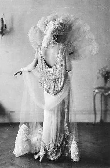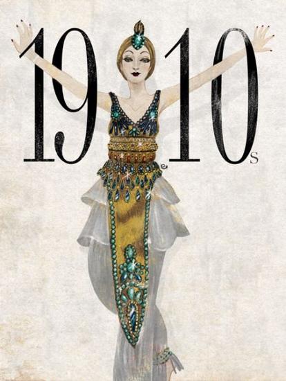 这一时期受迪考(deco)艺术,和一战的影响,服装廓形从侧s过渡到平直轮廓,风格上也从追求丰满成熟转为稚拙,Paul Poiret 相继推出蹒跚裙和塔裙。风格上出现很多印度元素。