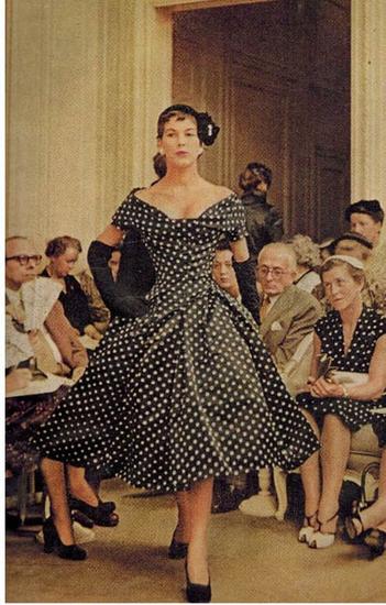 50年代之风,吹袭的不是刻意保持“优雅”的矜持,而是从细腰及A线的廓型、花柄图案、柔嫩的色泽、精美的蕾丝羽毛轻纱以及改良后的复杂面料,用比较高难度的定制手工,从廓型结构上修饰女人的黄金比例。 pin-up girl招贴画女郎是50年代另一个符号,是性感女性的象征和代表。