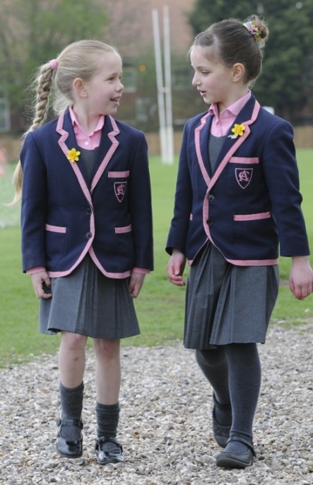 英国校服款式经典、简洁大方,学校要求学生必须穿着正统西式校服,男生为正统西装、正规皮鞋、需要佩戴领带;女生也是统一西式正统服装、正规女式皮鞋、必须佩戴领花。这种经典的校服款式,以及严谨细致的服饰搭配,潜移默化地影响着英国学生的气质和审美。