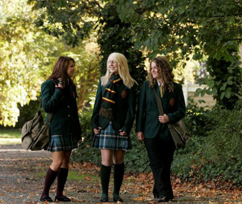 男生大多是白衬衫西装裤,女生通常是白衬衫加花格子百褶裙还有蝴蝶结,淑女范儿中又透着点帅气。