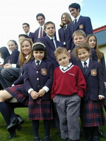 外面套一件毛衣;冬天也可以穿长裙。男生通常是男士短袖衬衫加短裤,冬天也是在外面套一件毛衣;冬天也可以穿长裤。还有专门给选体育课的学生准备的运动服套装。学生们必须严格遵守这些规定,校服除了两季的衣物外,从帽子到鞋子袜子,运动衣,都必须统一。