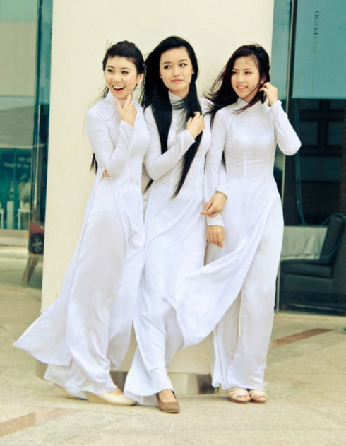 越南把传统服装“奥黛”作为校服,和中国的旗袍有几分类似,由于白色为主更显的多了些灵性少了些世俗之气。