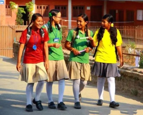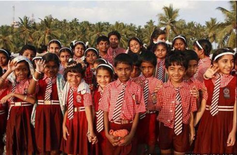 印度的校服款式基本是复制英国的,只是颜色上结合了印度人肤色的特点,采用了偏暖色调。偏橙红色的衬衣显示了学生的活泼和朝气。
