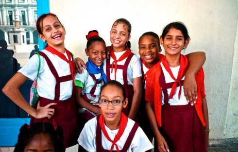 古巴是现存世界为数不多的5个社会主义国家,当地的校服非常的简单,古巴女生的校服,白色T恤加红色背带裙。一看到古巴的妹纸,就想起排球。