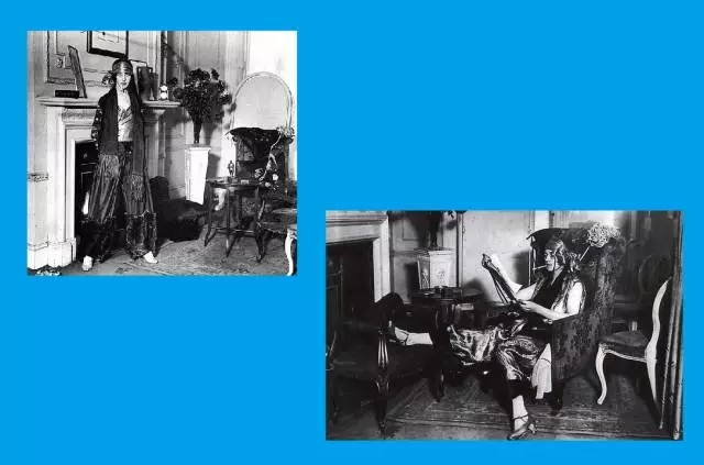 Bloomers在诞生时曾备受嘲讽,而尽管Poiret最终也没有实现将裤装纳入女性常规衣橱的野心,但他让自己纤瘦高挑的妻子Denise穿上小腿处拼接皮草的宽松裤装和伊斯兰便鞋,佩戴丝质头巾,出席各种社交晚宴,成为当时前卫女性的着装典范,为现代女性裤装打下了基础。