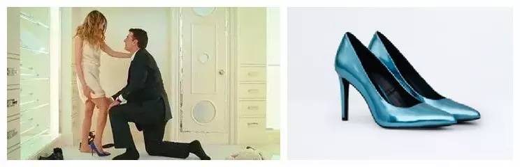 还记得《欲望都市》中那个拿买房钱换了一屋子美鞋的女主角CarrieBradshaw吗?这个嗜“鞋”如命的单身女作家可以在被打劫时只祈求留下自己的那双高跟鞋电影版《欲望城市》中。而Mr.Big以鞋取代钻戒向爱ManoloBlahnik成痴的Carrie求婚的桥段,已成经典画面,他单膝下跪替凯莉穿上这个定情的信物,贵气皇家蓝上缀满了闪亮的水钻,如同超大钻戒一般,像极了耳熟能详的灰姑娘穿上玻璃鞋的场景。