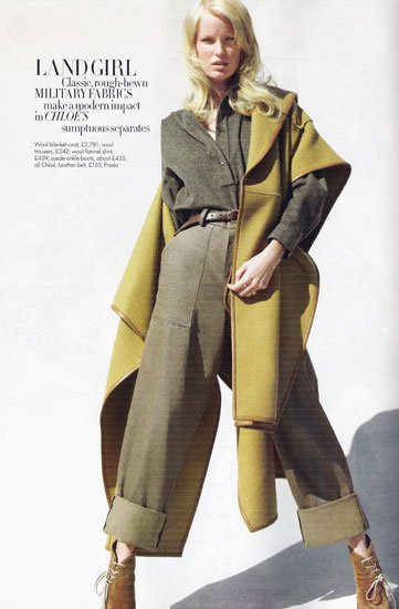 09英国版《Vogue》对秋冬的时尚要点描述是:永恒的材质依然是造型的法宝,皮革、花呢、天鹅绒被轮番运用在奢感摩登的剪裁中。