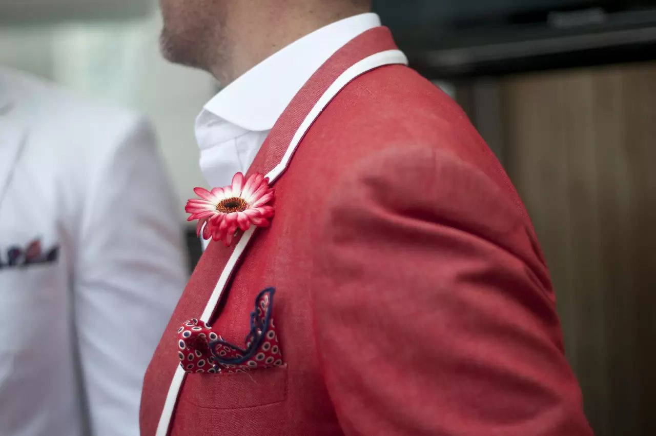 欧洲曾有这样的说法,女士若应允男士的求婚,就会别一朵花在男士西装驳领的插花孔里,且不论这个传说的值是否为真,这样的小细节营造出了浪漫的氛围。