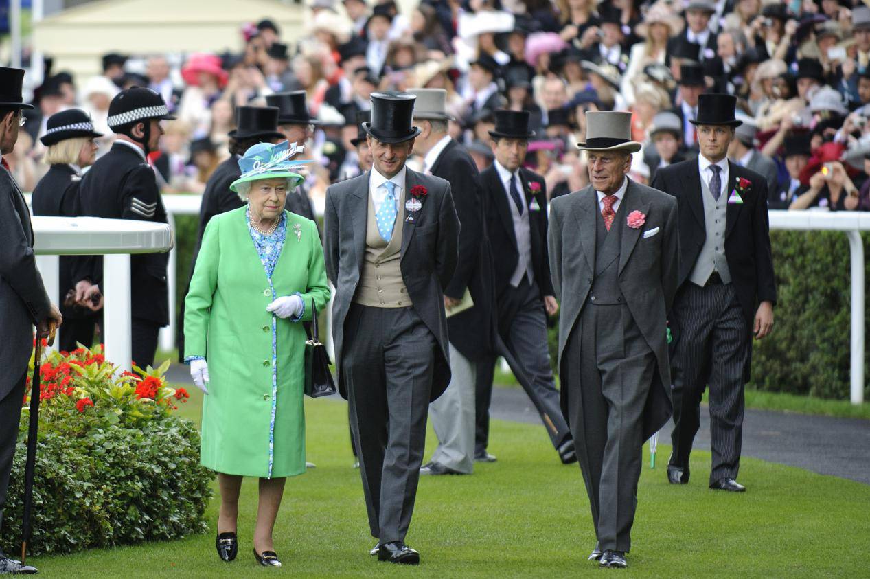 下图是英国皇家塞马会上,皇室成员们的着装。其他几位男宾都选择了红色康乃馨,伊丽莎白女王的丈夫菲利普亲王佩戴的是接近白色的粉色康乃馨,赛马会是一个正式场合。